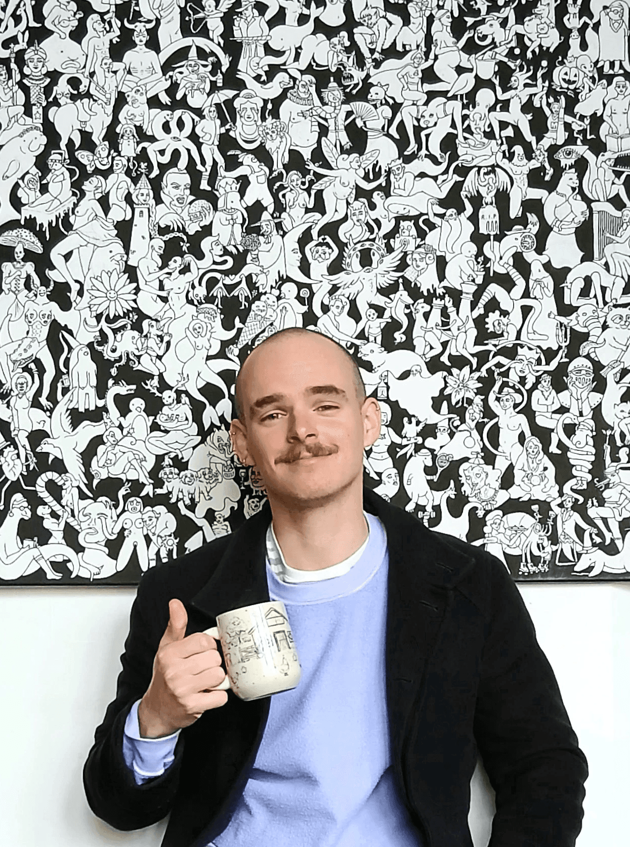 Artiste visuel autodidacte, je crée des mondes oniriques peuplés d'hurluberlus mystiques et dionysiaques inspirés par notre imaginaire collectif.