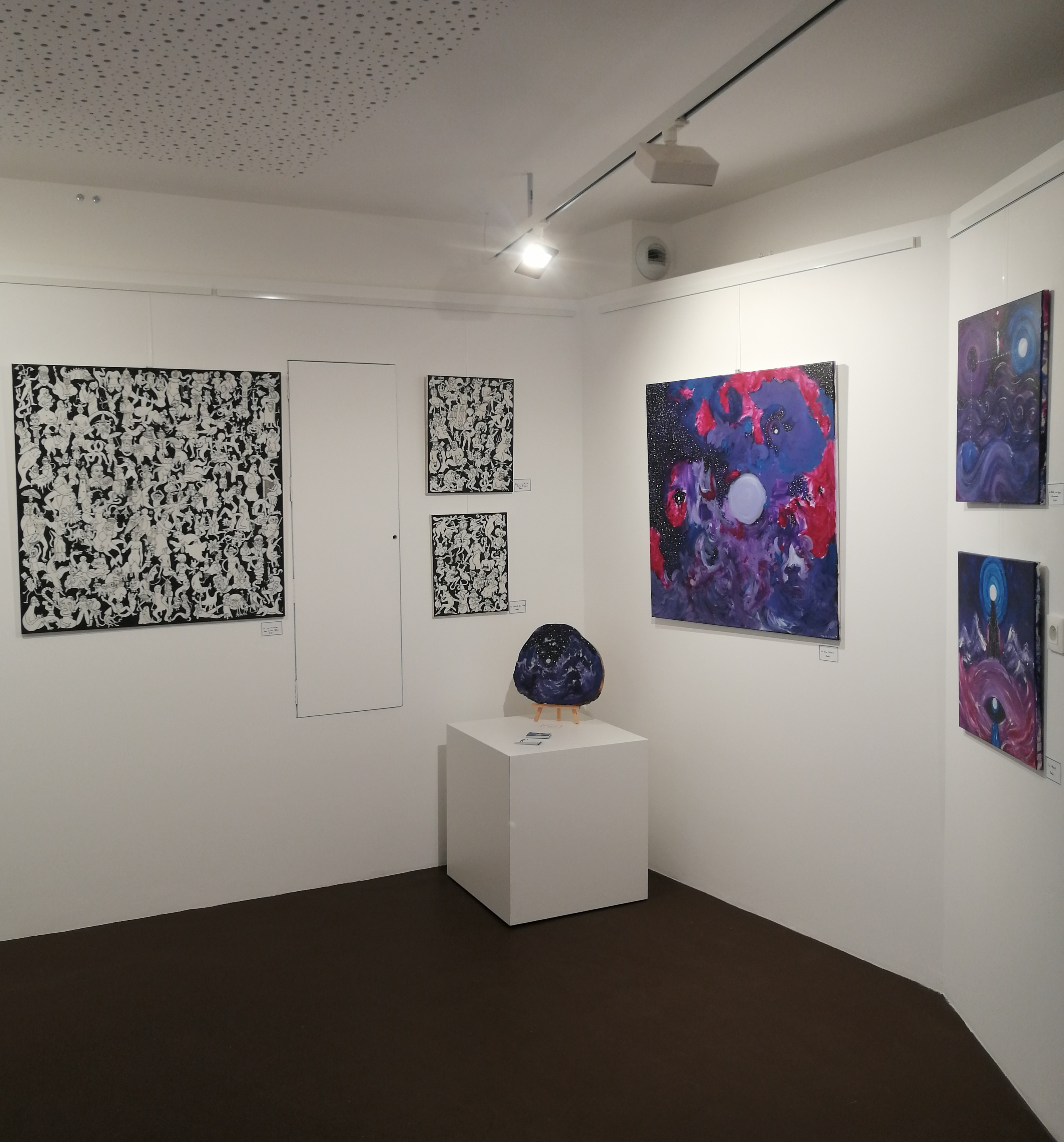Mes peintures et dessins sont des contes qui explorent nos identités multiples, nos symboles communs et nos émotions énigmatiques. Par mes sujets, mes couleurs et mes formes, je montre comment rêves et fantasmes révèlent la beauté d’un univers absurde où tout est lié.
